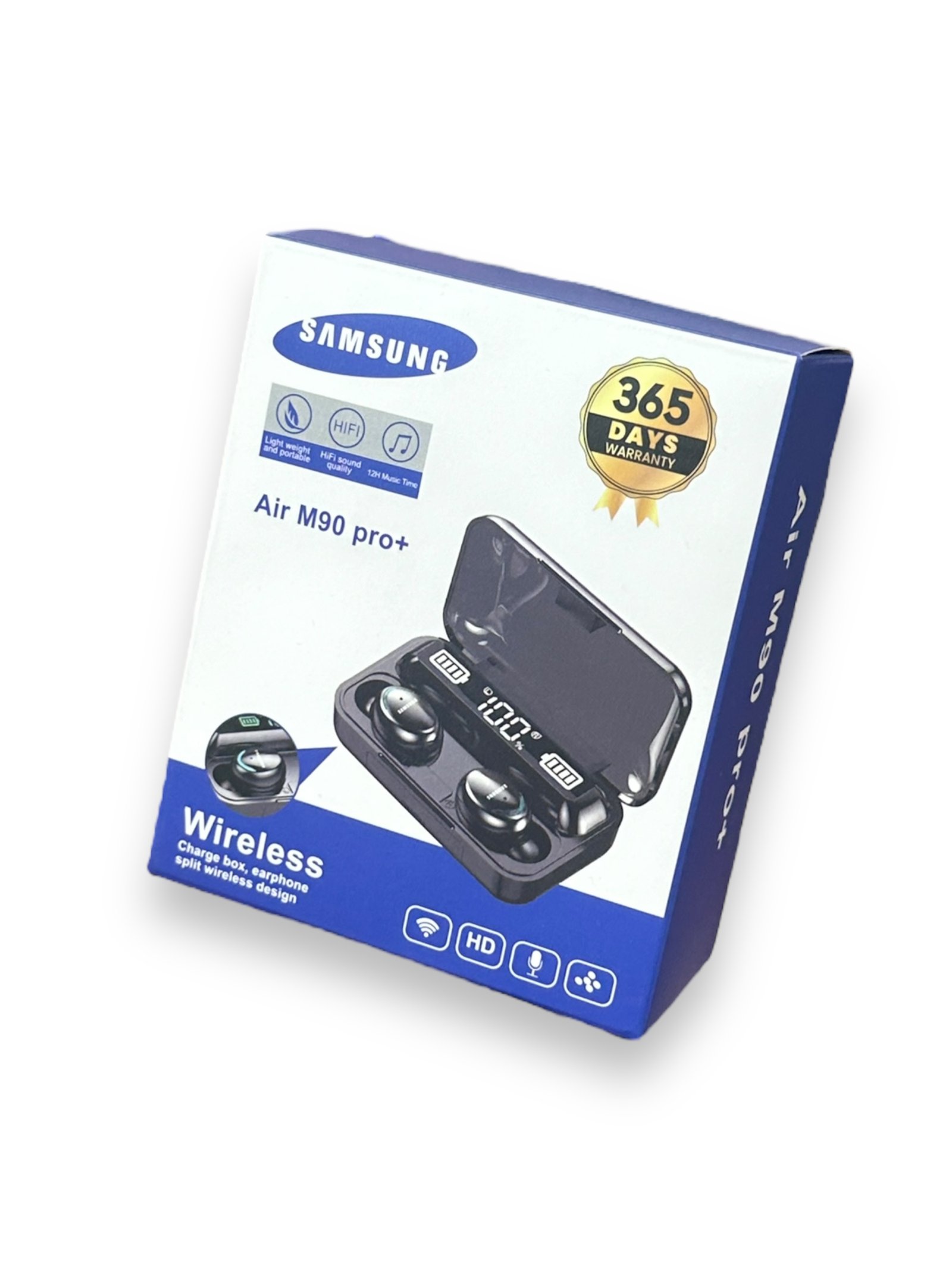 Los auriculares inalámbricos Samsung Air M90 combinan estilo moderno, comodidad todo el día y conectividad avanzada Bluetooth para brindarte la mejor experiencia de audio sin cables. Ideales para música, llamadas y uso diario 📱🎶.