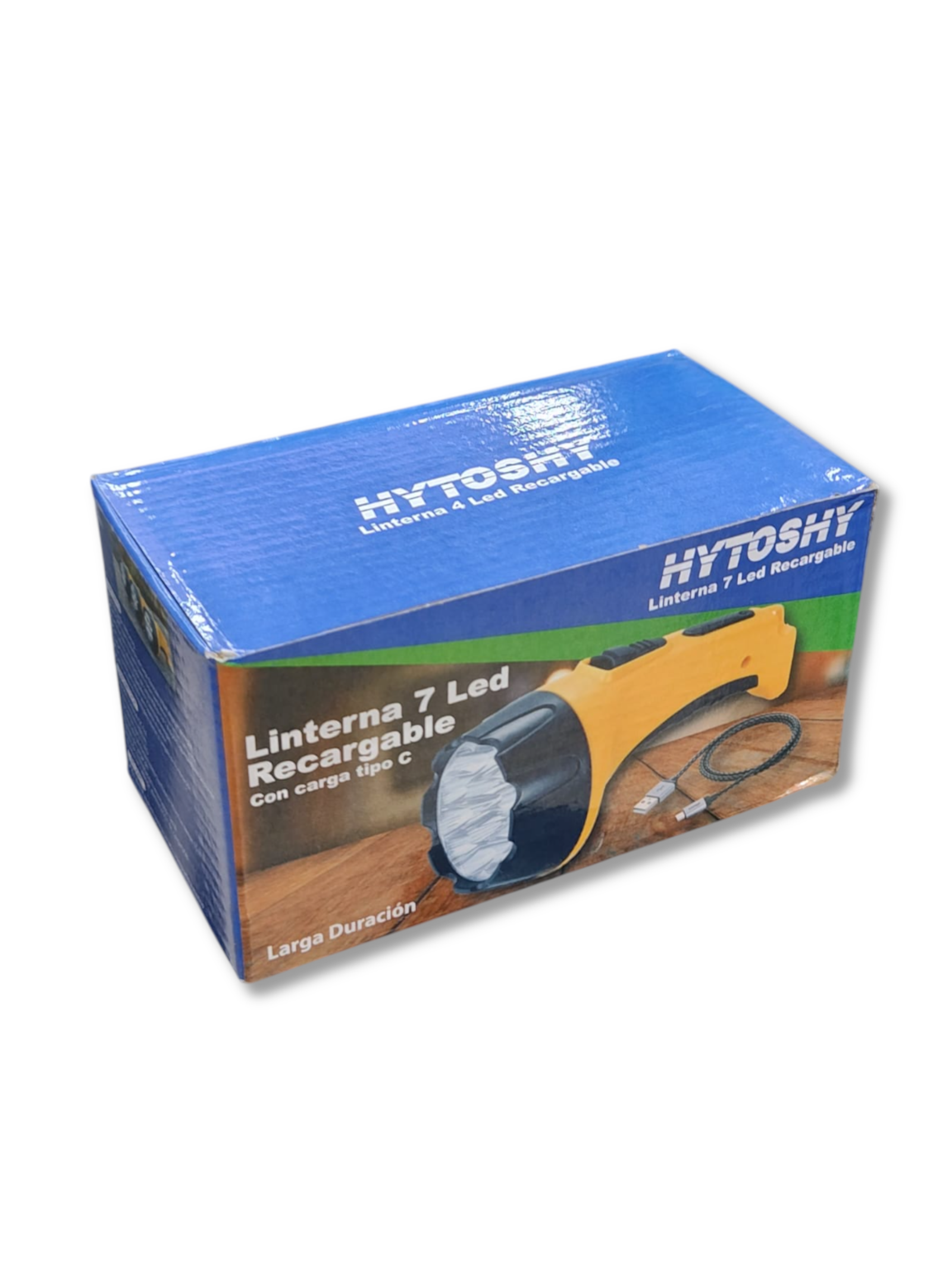 La Linterna 7 LED Recargable Tipo C Hytoshy es una solución práctica y confiable para quienes necesitan iluminación inmediata y duradera. Sus 7 LEDs de alto brillo proporcionan una luz clara y estable, ideal para múltiples usos diarios.
