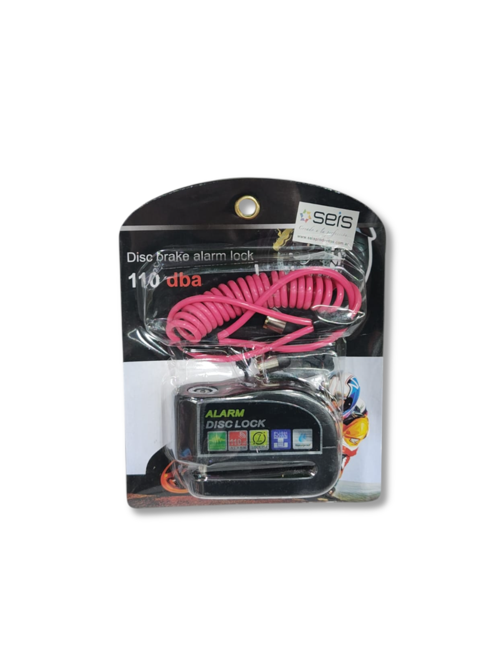 La Alarma Disc Lock Disc Brake 110 DBA está diseñada para brindar protección inmediata contra robos. Se instala directamente en el disco de freno de la moto y emite una potente alarma sonora ante cualquier intento de movimiento o manipulación.