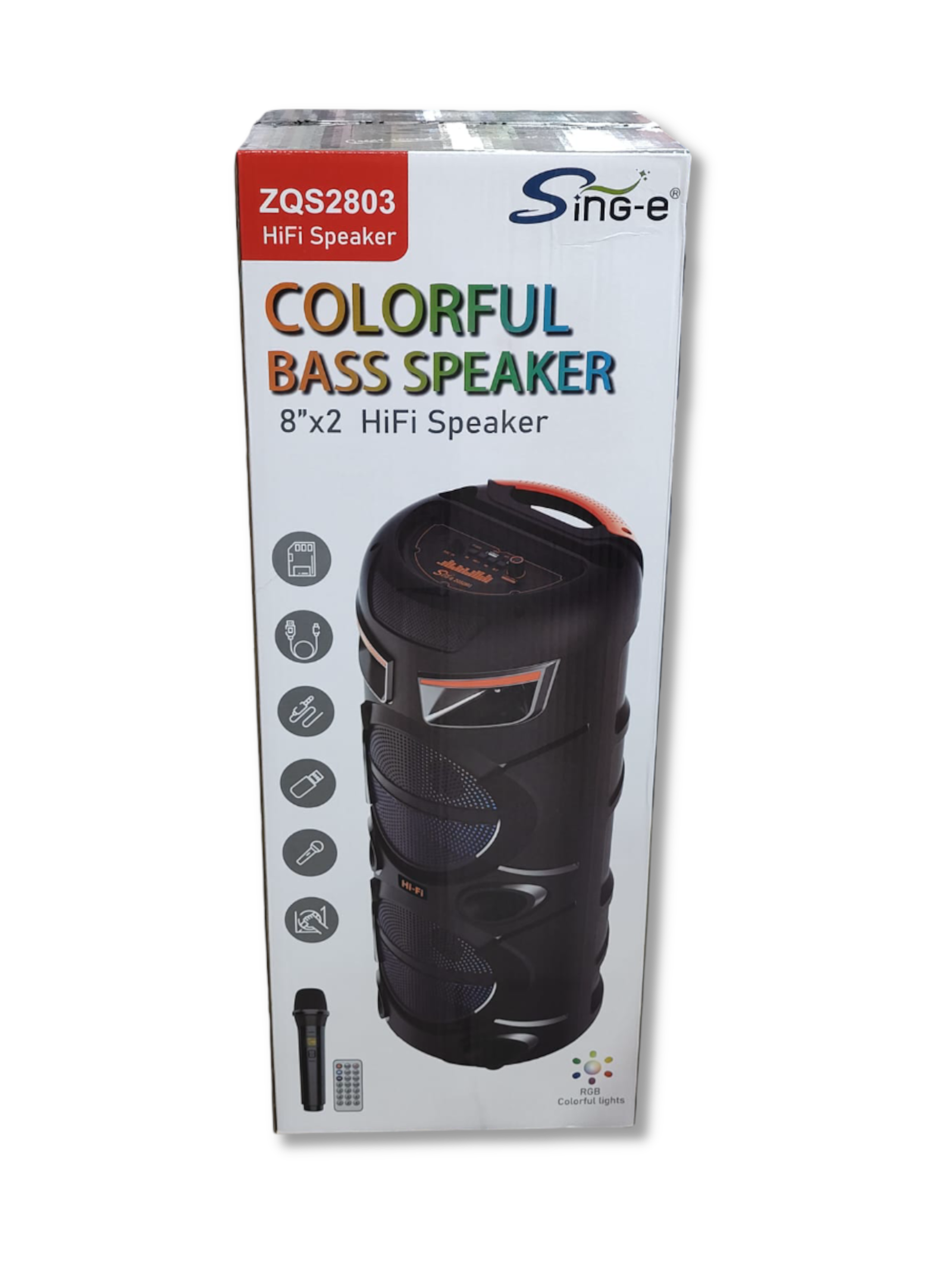 El Parlante Colorful Bass ZQS2803 es tu compañero perfecto para música, fiestas, reuniones familiares o eventos. Con conectividad Bluetooth, luces RGB, micrófono y control remoto, este parlante ofrece potencia y versatilidad para disfrutar de tus canciones favoritas con estilo.